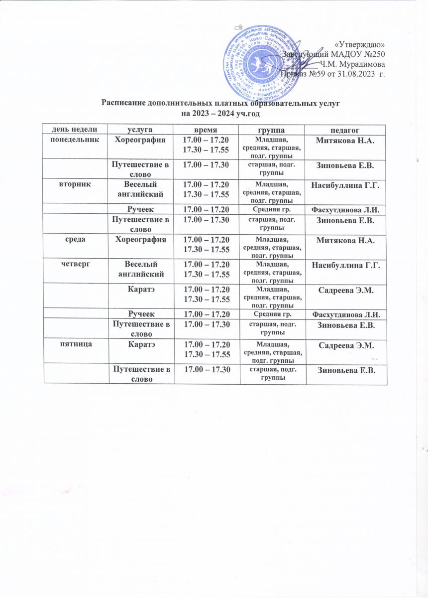 Расписание дополнительных платных образовательных услуг