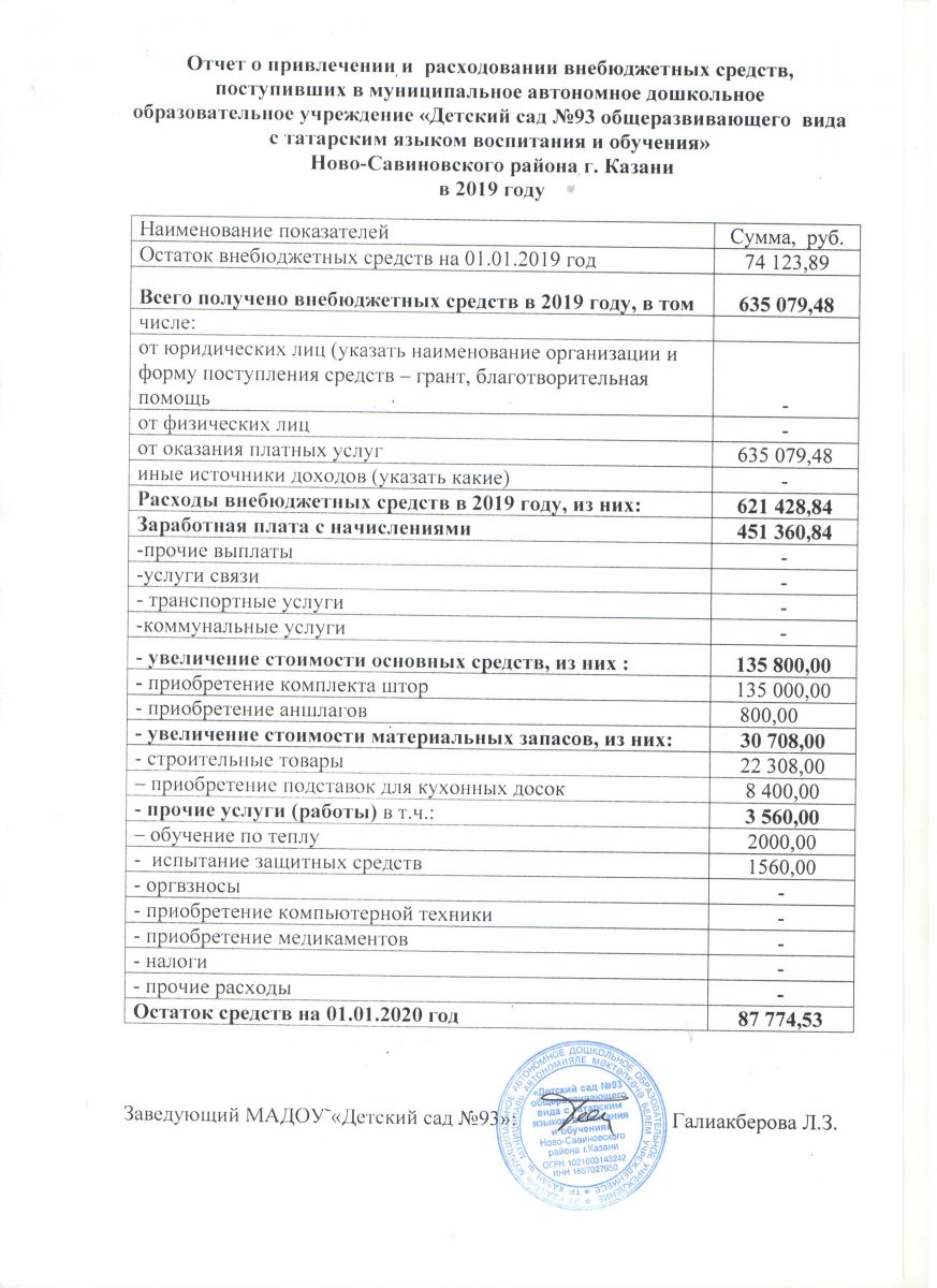 Отчет о привлечении и расходовании внебюджетных средств за 2019 год