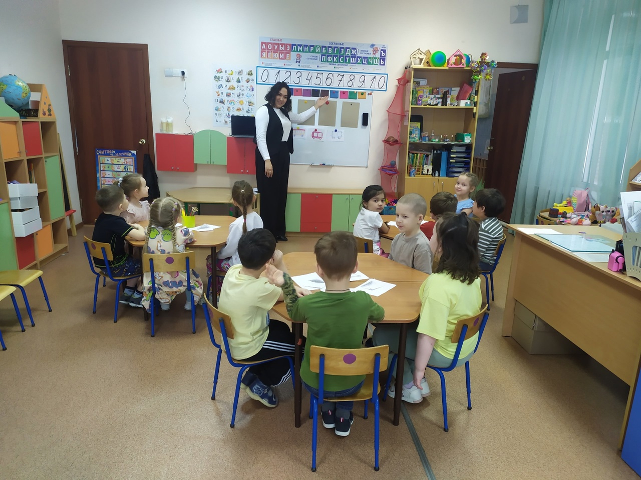 В старшей группе учитель-логопед Ксения Андреевна провела занятие по обучению грамоте.