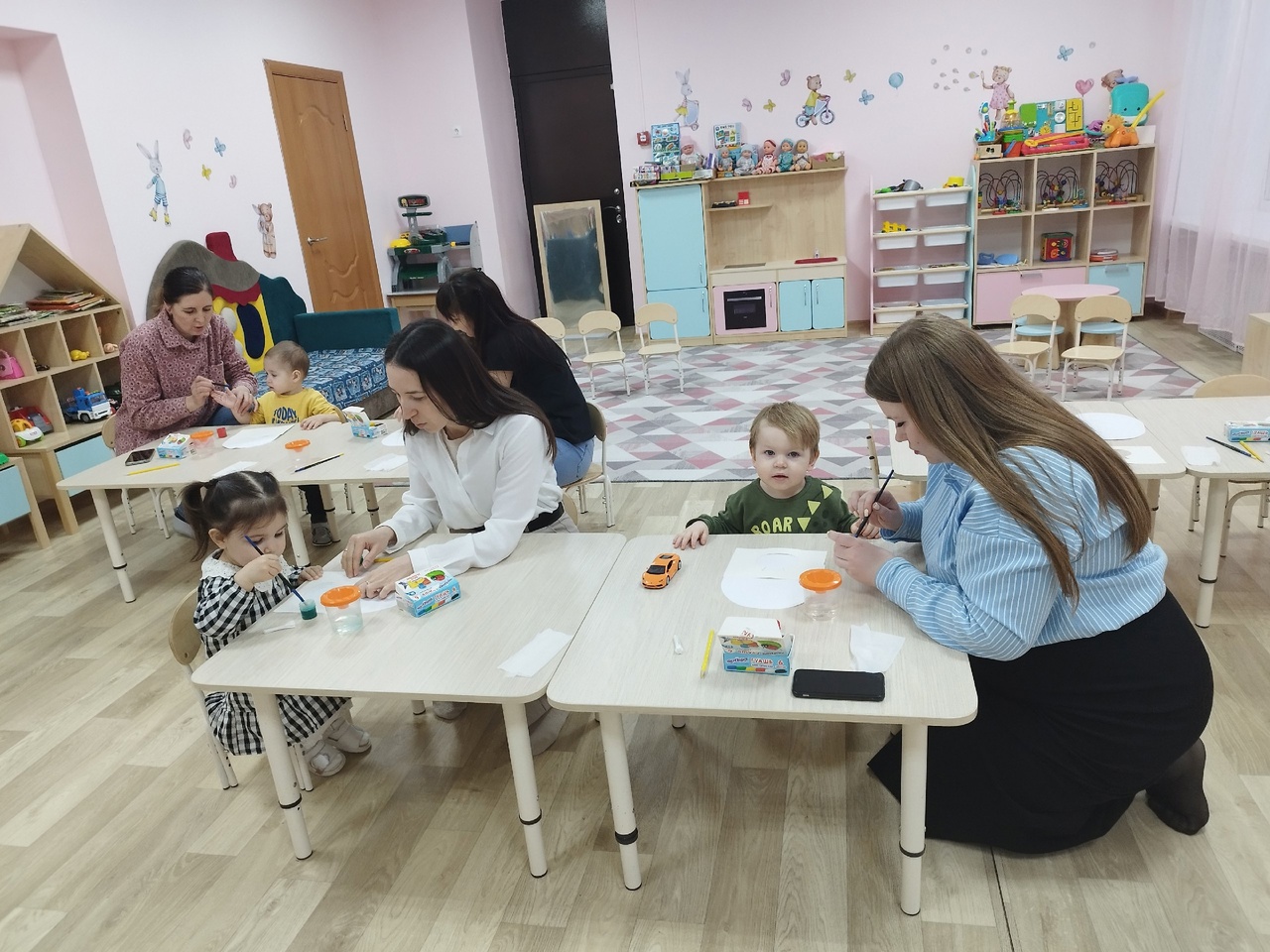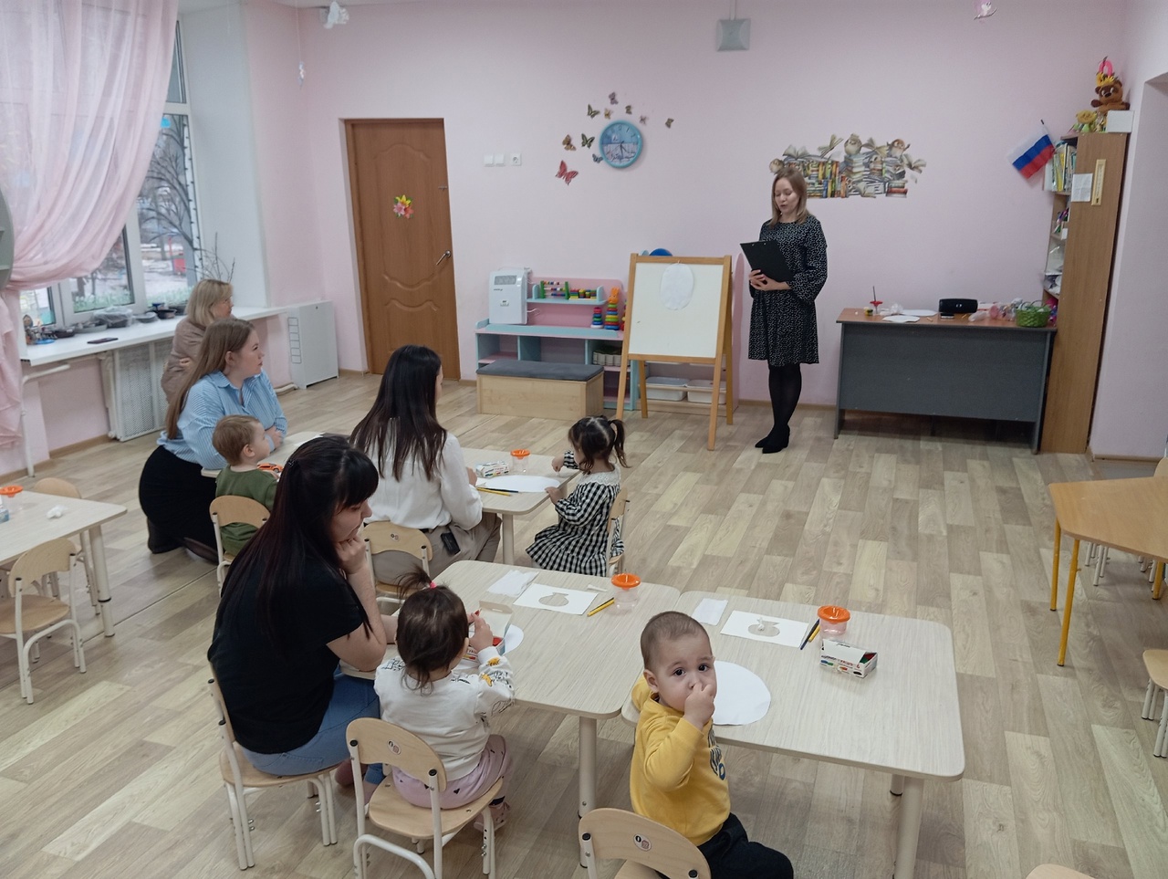 А вечером для самых маленьких прошел совместный мастер-класс с родителями, на котором дети с мамами рисовали букеты цветов.