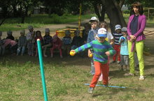 Сегодня в детском саду прошли соревнования между старшими дошкольниками "Веселые старты на лесной полянке" 26.06.2014