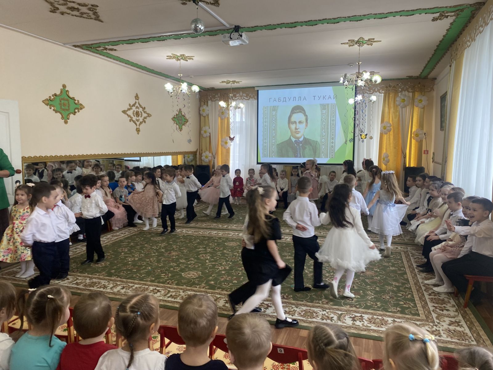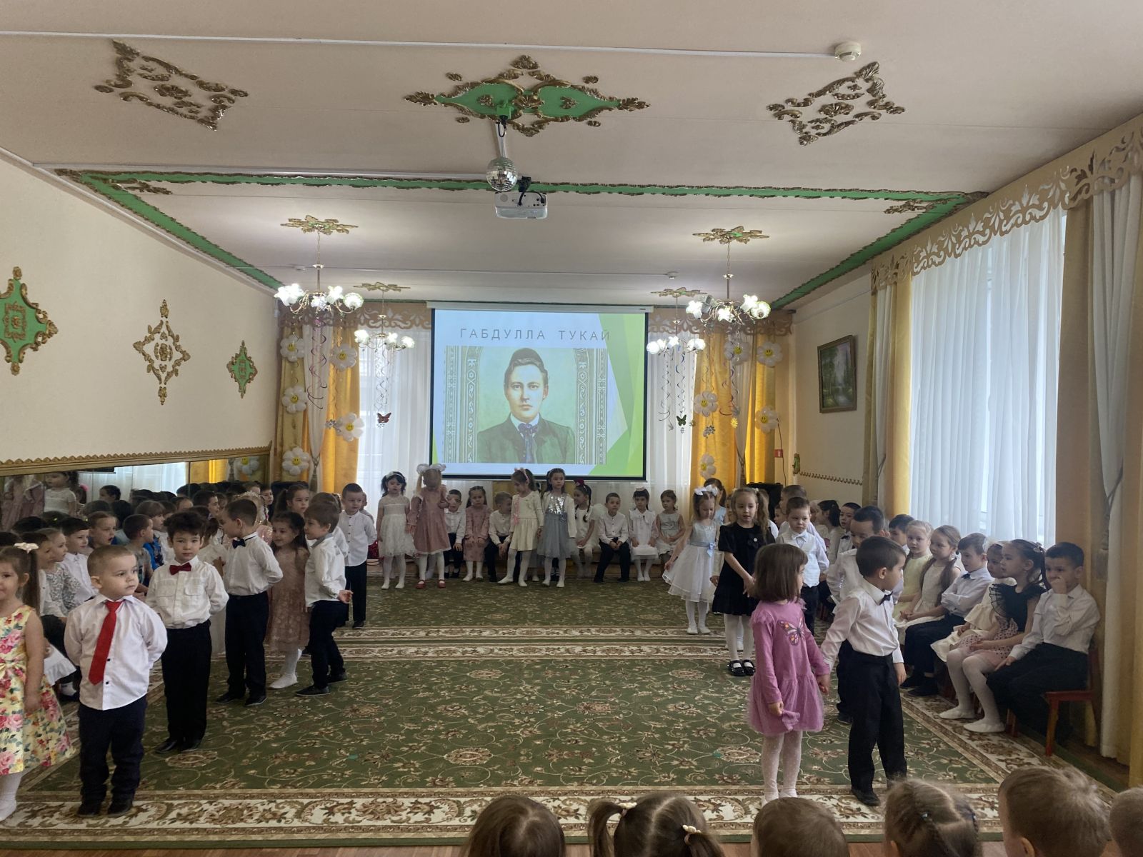 Балалар бакчасында Габдулла Тукайның 140 еллыгы билгеләп утелде.Балалар бу бәйрәмгә бик ныклап әзерләнделәр. Габдулла Тукайның шигырьләрен сөйләделәр, аның сүзләренә язылган җырларын җырладылар, мультфильмнарын карадылар. Бәйрәм бик эчтәлекле үтте.