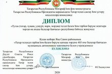 Уку елы башында, Татарстан республикасы Президенты каршындагы Татар телен саклау һәм үстерү мәсьәләләре комиссиясе Татарстан Республикасы Мәгариф һәм фән министырлыгы тарафыннан "Туган (татар, чуваш, удмурт, мари, мордва) телендә белем һәм тәрбия бирүне оештыра торган иң яхшы балалар бакчасы" республика бәйгесен игълан итте. Без үз чиратыбыз да, ризалык белдереп. Сайлап алу этапларын үтеп. Беренчелекне яклап чыктык һәм җиңдек. Коллективыбызның бердәмлеге һәм тырышлыгы ярдәмендә. 25 нче ноябрь көнне безнең балалар бакчасы Диплом һәм 500 мең сумлык сертификат белән бүләкләнде.