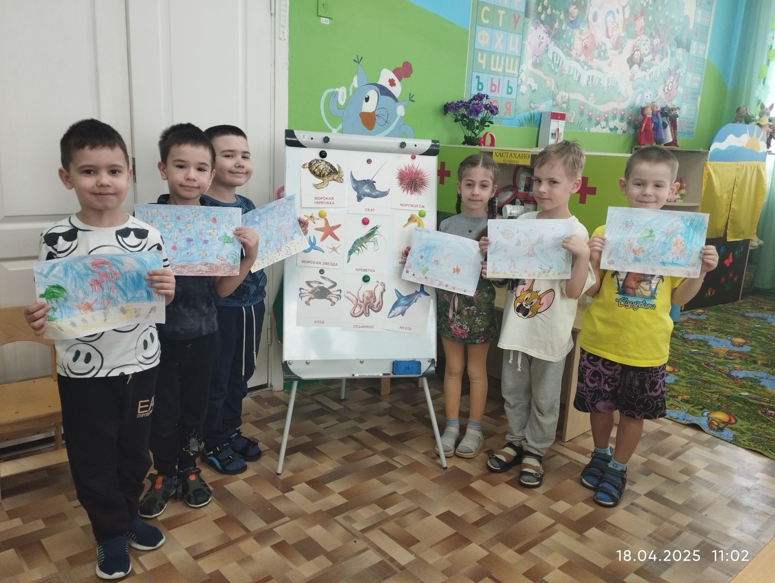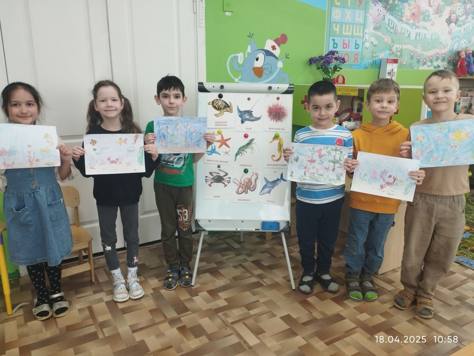 Дети изучали жителей морских вод.