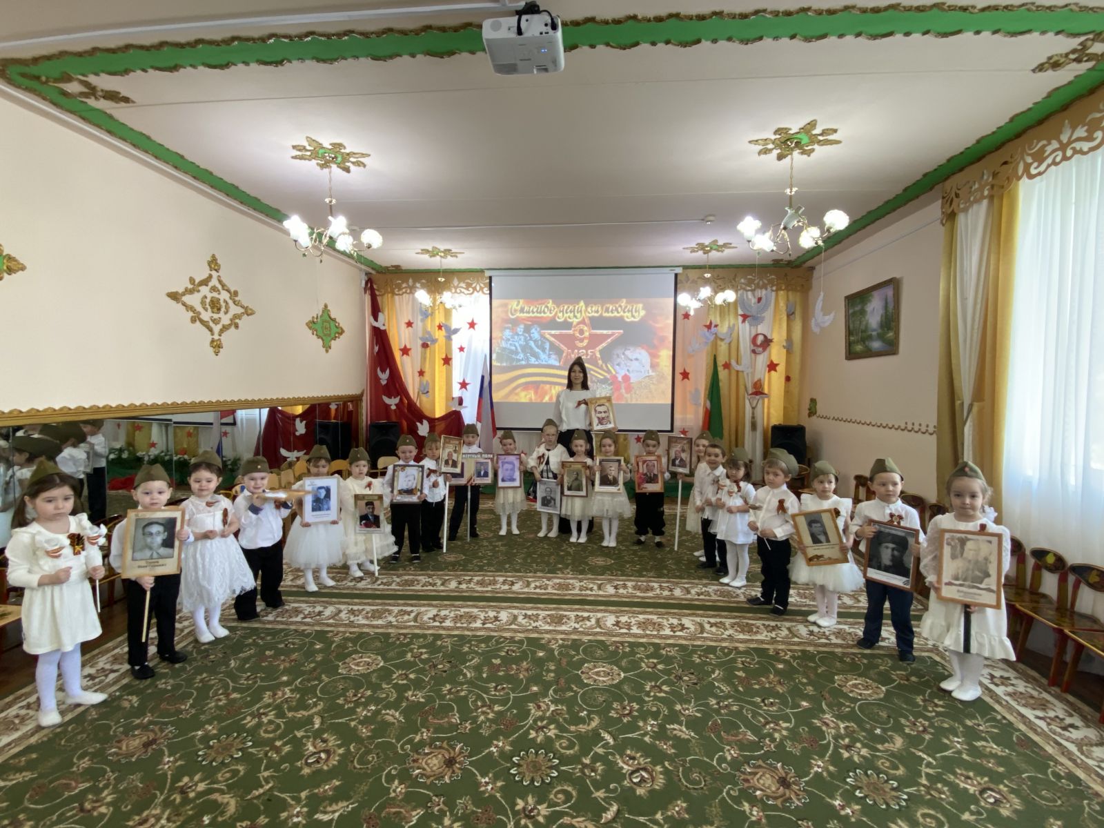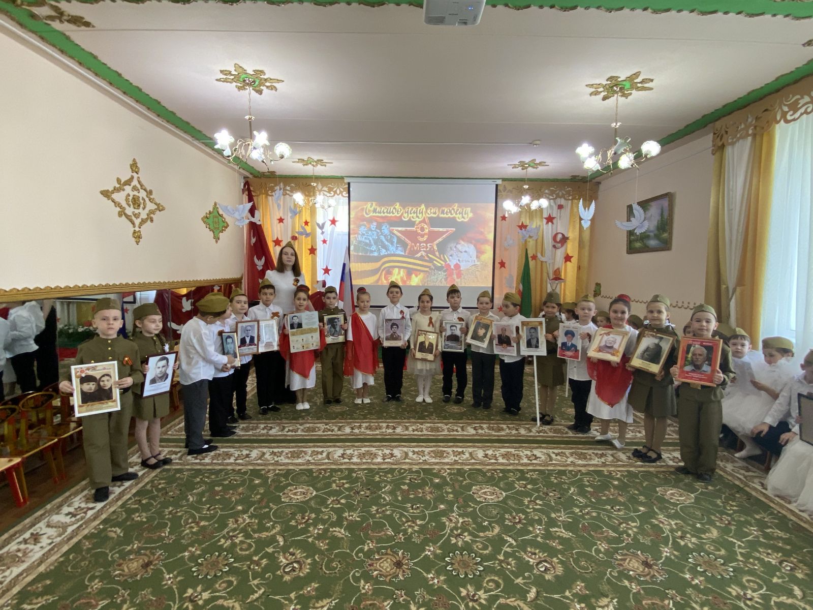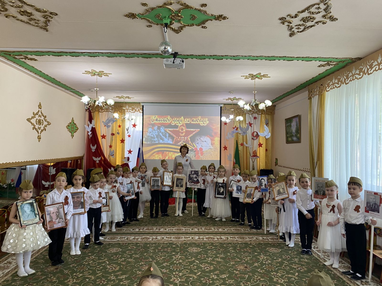 Праздник Великой победы – 9 мая – один из главных праздников нашей страны. ... В нашем детском саду прошли мероприятия, посвященные великой юбилейной дате праздника Победы. Победа далась в нашей стране дорогой ценой — погибли миллионы солдат. Имен многих из них мы не знаем. Но мы чтим память тех, кто отстоял нашу Отчизну от фашистских захватчиков. Во многих городах горит Вечный огонь, мы возлагаем к нему цветы. Никто не забыт, ничто не забыто!