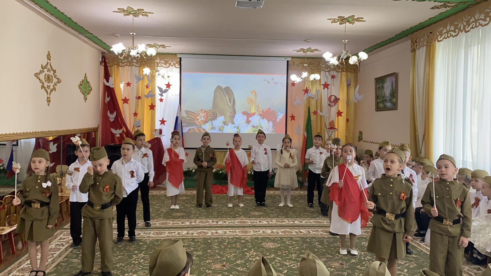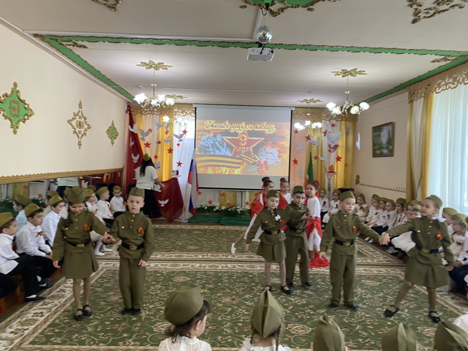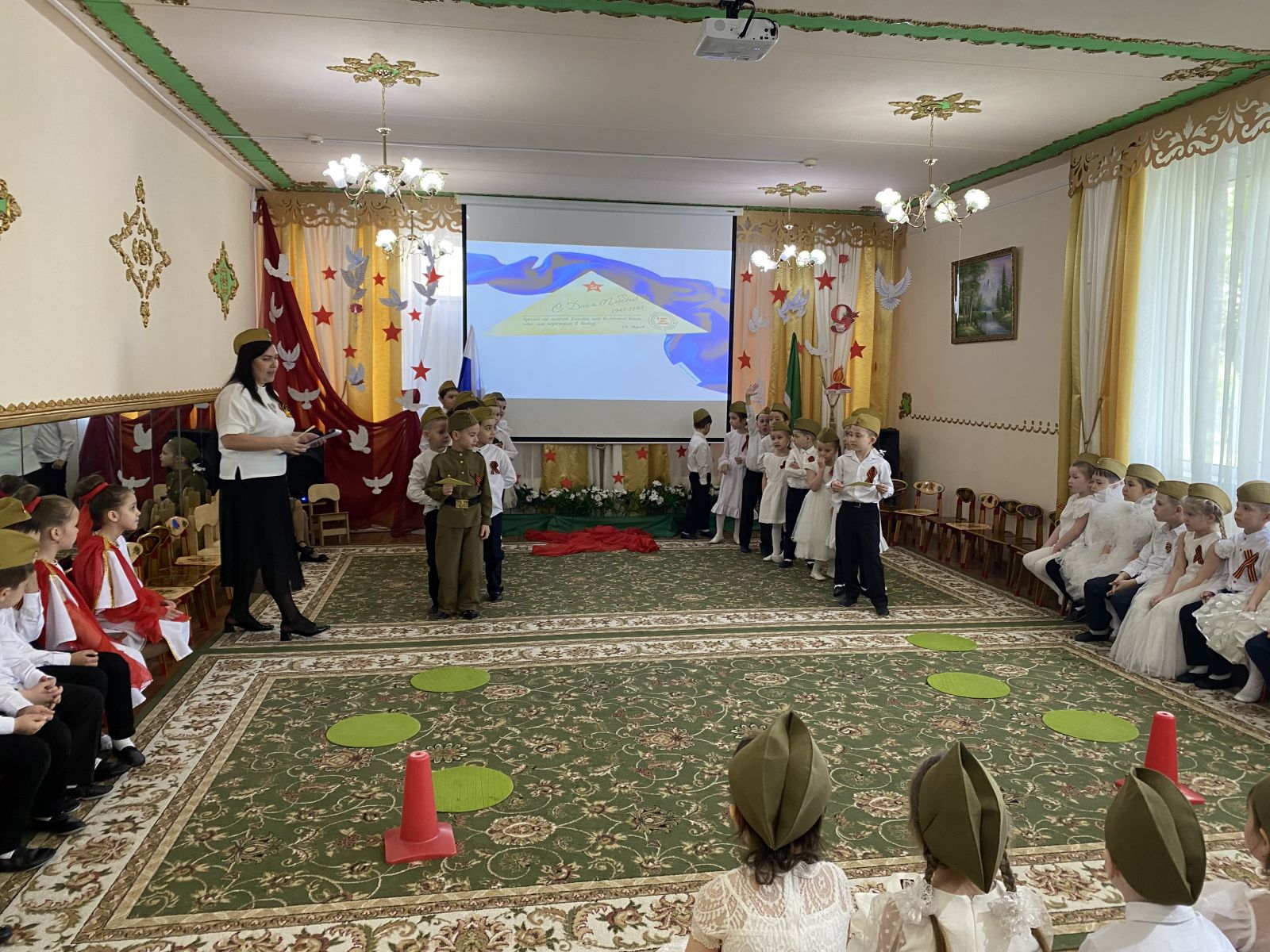Праздник Великой победы – 9 мая – один из главных праздников нашей страны. ... В нашем детском саду прошли мероприятия, посвященные великой юбилейной дате праздника Победы. Победа далась в нашей стране дорогой ценой — погибли миллионы солдат. Имен многих из них мы не знаем. Но мы чтим память тех, кто отстоял нашу Отчизну от фашистских захватчиков. Во многих городах горит Вечный огонь, мы возлагаем к нему цветы. Никто не забыт, ничто не забыто!