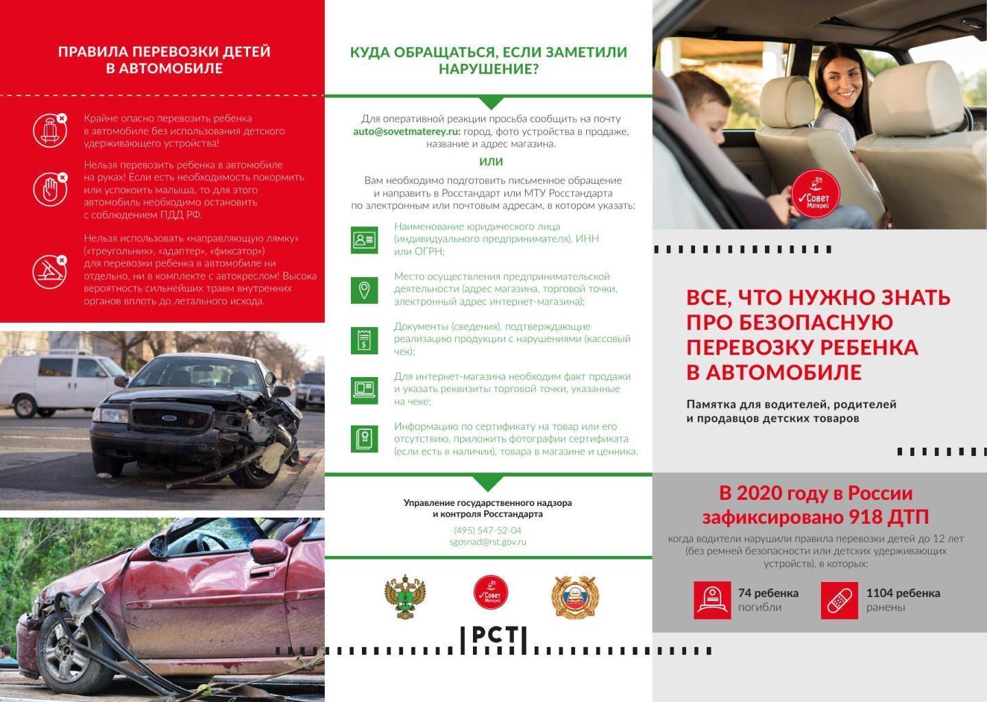 Памятка "Безопасная перевозка детей в автомобиле" 10.06.2021