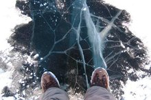 При переходе водоема по льду следует пользоваться оборудованными ледовыми переправами или проложенными тропами, а при отсутствии - убедиться в прочности льда с помощью пешни или другого подручного средства. Проверять прочность льда ударами ноги опасно.