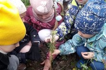 В рамках городского экологического проекта "Растем вместе" воспитанники подготовительных к школе групп высадили на территории детского сада саженцы сосны.