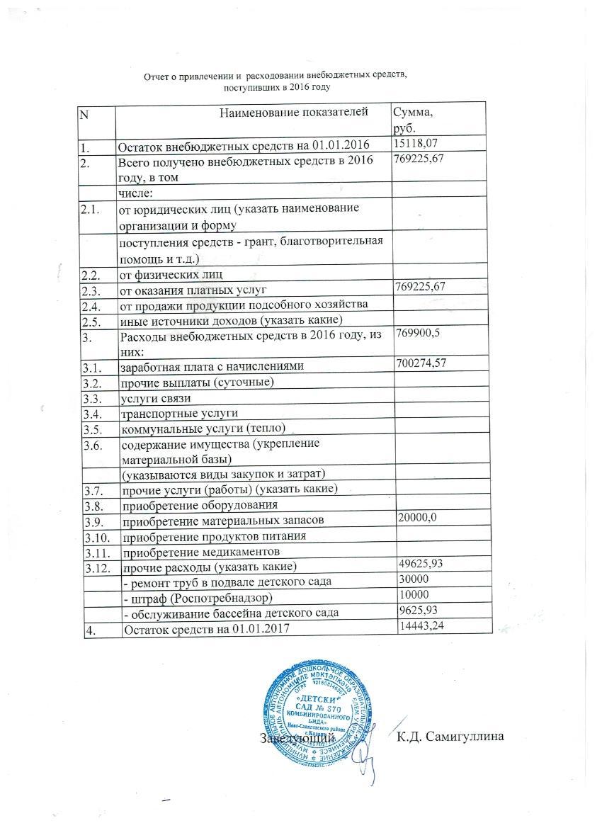 Отчет о привлечении и расходовании внебюджетных средств за 2016 год