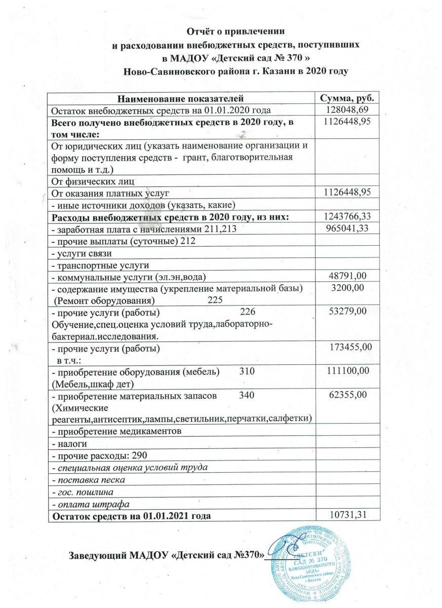 Отчет о привлечении и расходовании внебюджетных средств за 2020 год