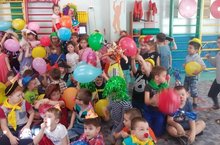 Сегодня воспитанники нашего детского сада собрались, чтобы повеселиться и отметить День смеха, шуток и веселья. Ребятишки пришли в детский сад в красивых шляпках и разноцветных париках. Услышав музыку и смех, на шум заглянул веселый Клоун и решил повеселиться вместе с ребятами. Он загадывал детям смешные загадки, играл с ними в веселые игры. А дети спели Клоуну забавную песенку голосами разных животных, научили танцевать веселые танцы. Клоуну очень понравилось в нашем детском саду, понравились костюмы ребят, он пообещал вернуться. И детям понравилось веселиться с таким гостем.