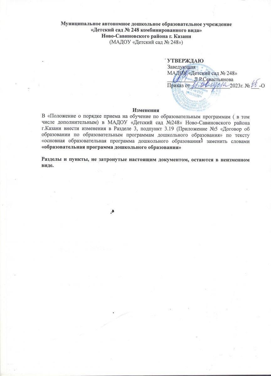 Изменения в Положении о порядке приема на обучение по образовательным программам