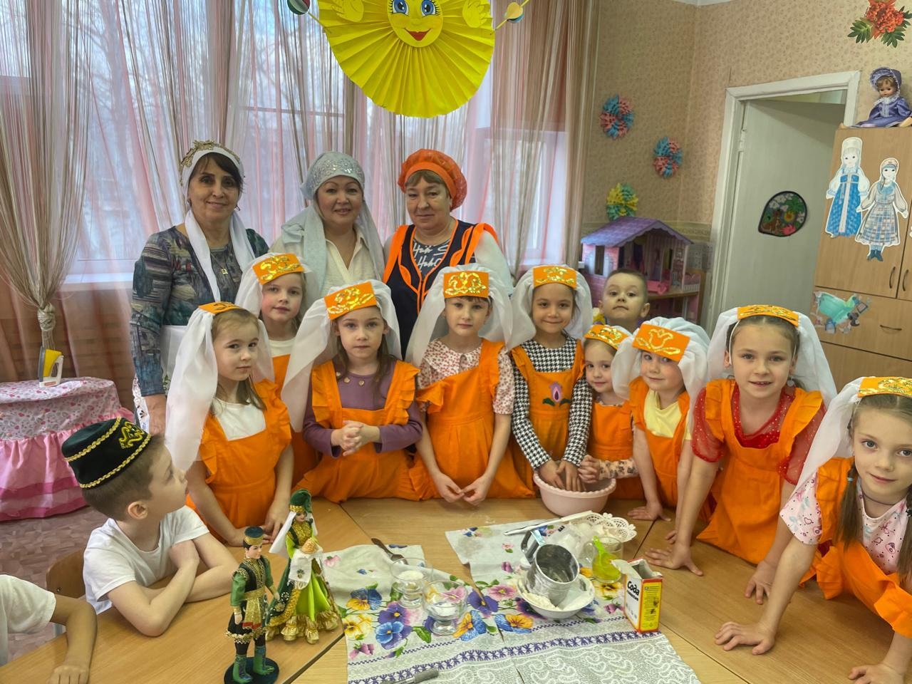 Наши маленькие кулинары из подготовительной к школе группы №11 вместе с любимыми воспитателями решили порадовать дорогих мам праздничным сюрпризом. Ребята сами готовили традиционное татарское блюдо — "кош теле" (хворост)! Под чутким руководством педагогов Гузель Агзамовны и Резеды Фаритовны детишки аккуратно замесили и раскатывали тесто, вырезали его специальным ножом, создавая очаровательные фигурки будущего хвороста.