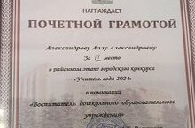 В этом году в профессиональном конкурсе "Воспитатель года 2024" участвовала воспитатель по физической культуре Александрова Алла Александровна. Поздравляем её с 3 местом на районном этапе. Желаем крепкого здоровья, успехов и дальнейших побед.