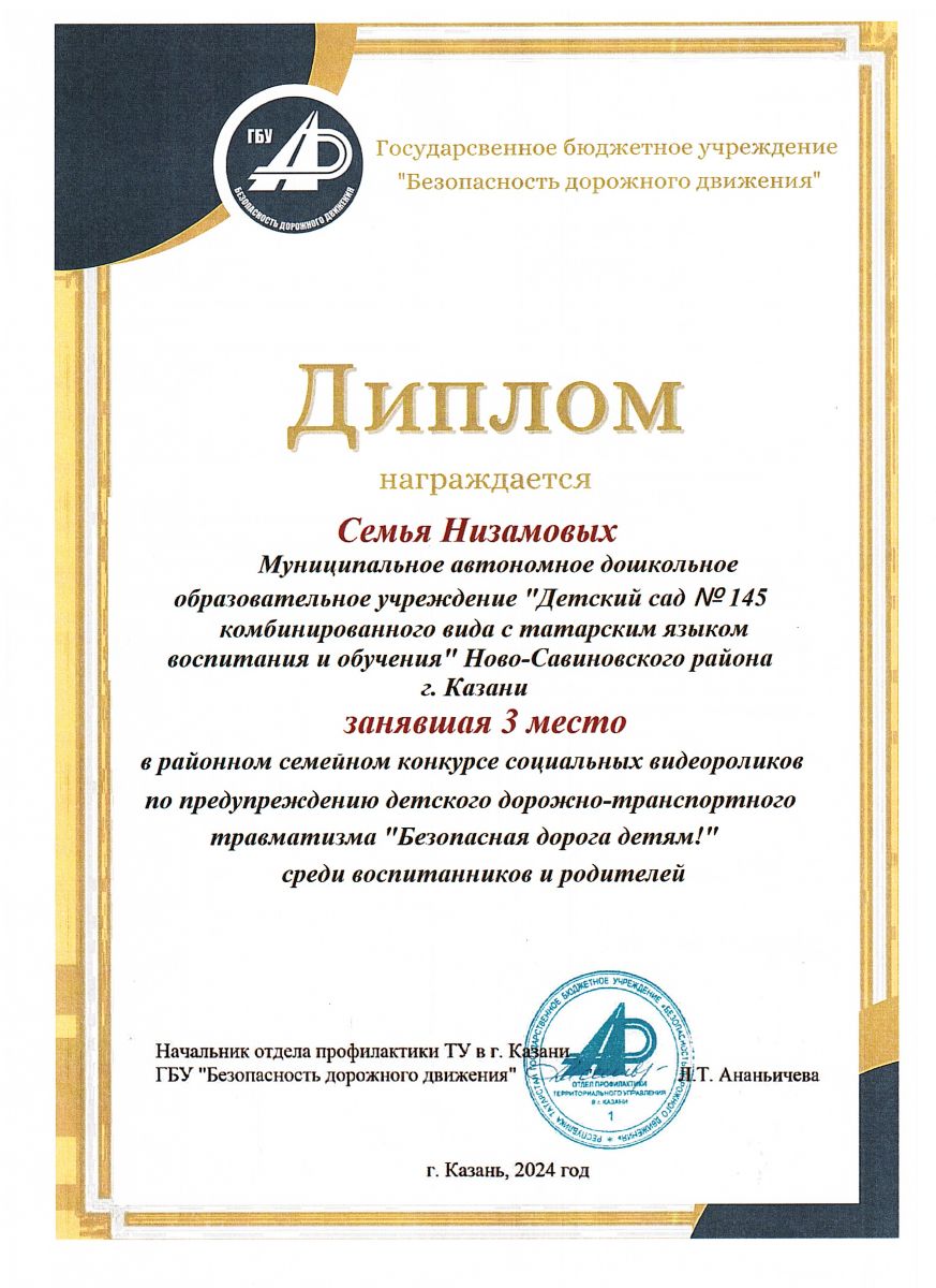 Семья Низамовых и семья Шавалиевых награждены Дипломами за 3 место и памятными подарками. От всей души поздравляем и благодарим за активное участие наших воспитанников а также их родителей. Желаем успехов в дальнейшем. Отдельная благодарность старшему воспитателю Сулеймановой Айгуль Альбиртовне за подготовку конкурсантов.