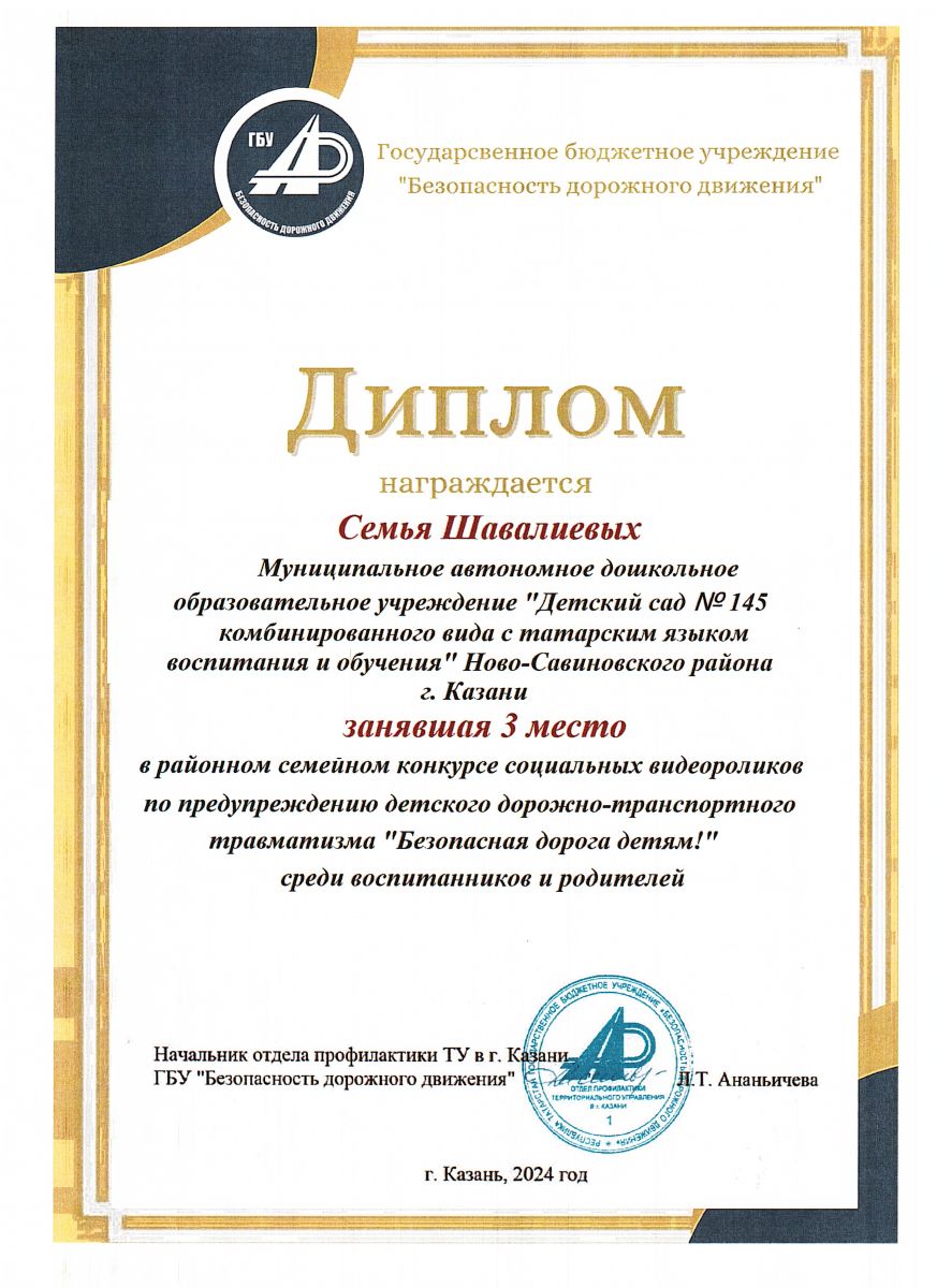 Муниципальное автономное дошкольное образовательное учреждение "Детский сад № 145 комбинированного вида с татарским языком воспитания и обучения" Ново-Савиновского района г. Казани
