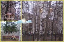 Родители с детьми,воспитатели встречая весну, развесили скоречники и кормушки, их уже обживают птицы...