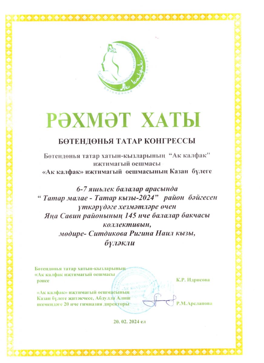 Коллектив нашего детского сада, в лице заведующий Ситдиковой Ригины Наилевны был отмечен