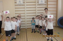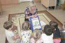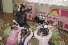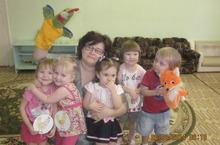 На фоторгафии воспитатель первой младшей группы № 1 Ольга Владимировна Волковая со своими воспитанниками. Ольга Владимировна показала татарскую игру "Лисичка и курочки".