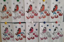 Маленькие художники рисовали, делали аппликации, лепили снегирей. Чудесные работы получились у детей! -