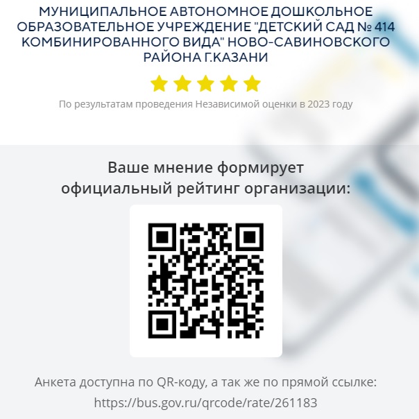 Вы можете оставить мнение о нашей организации. Чтобы оценить условия осуществления образовательной деятельности наведите камеру Вашего телефона и отсканируйте QR-код. Перейдя по ссылке, Вы сможете: