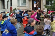 14 июля в детском саду организовано развлечение «Дорожная азбука». На праздник к ребятам пришли Маша и Медведь, которым ребята помогали переходить через дорогу и знакомили их с правилами дорожного движения.