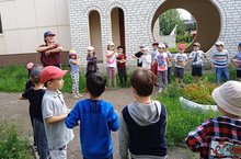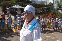 С малышами он сделал зарядку, поиграл в музыкальную подвижную игру "Раз, два, поворот ", загадал загадку и пригласил на флешмоб с танцем.