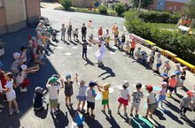 К самым маленьким участникам флешмоба пришел в гости самый спортивный и веселый гость - Спортик. Сделал с ними зарядку и разучил с ними танец маленьких утят.