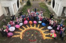 17 октября детские сады нашего района приняли участие в флешмобе «Погода к нам благоволит». Наши дети и педагоги выложили из осенних листочков солнышко.