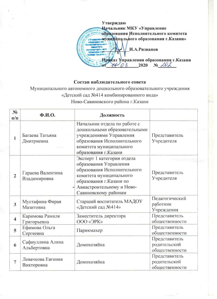 Состав наблюдательного совета МАДОУ Детский сад № 414