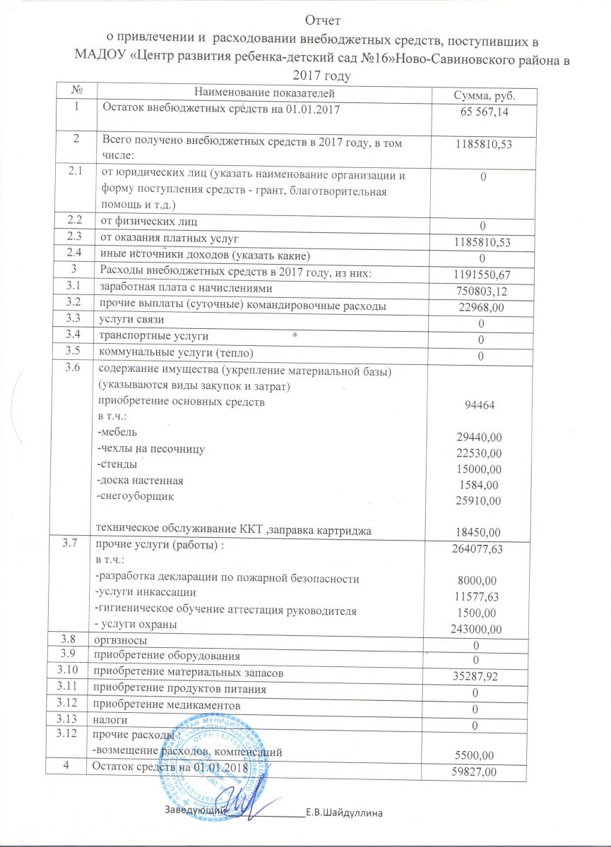Отчёт о привлечении и расходовании внебюджетных средств МАДОУ 16 - 2018 г