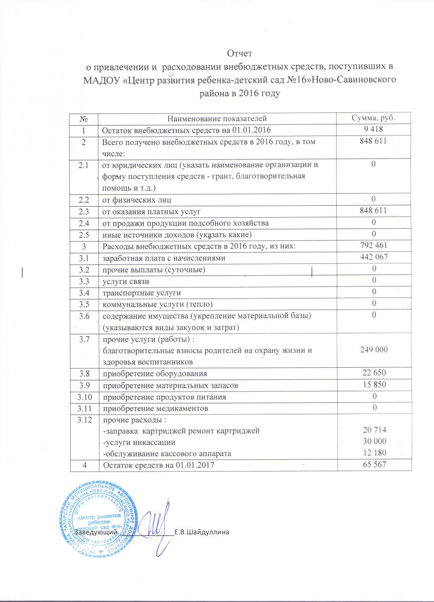 Отчёт о привлечении и расходовании внебюджетных средств в 2016 году