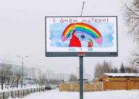 Улицы Казани украсили билборды с детскими рисунками в честь Дня матери.