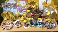 В нашем детском саду проходит выставка творческих работ "Осень золотая!". Родители совместно с детьми активно участвуют в подготовке творческих работ. Такая форма работы помогает педагогам успешно решать целый ряд воспитательно-образовательных задач: приобщать дошкольников к культурно-эстетическим ценностям, побуждать к творческой деятельности, воспитывать любовь к природе; способствовать обогащению представлений о природном и рукотворном мире, развивать познавательные интересы; повышать культурный уровень педагогов и родителей.