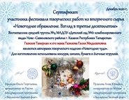 Воспитанник средней группы №4 Тамерлан вместе с мамой Галией Мидьхатовной приняли активное участие в фестивале творческих работ "Новогоднее обрамление. Взгляд в третье десятилетие", в рамках международной программы "Эко-школы/Зелёный флаг". Молодцы! 18.12.2020