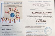 МАДОУ № 19 поздравляет воспитанников и педагогов Закирову Р.В. и Чамину А.В. с победой за 1 и 3 места в IV Международном конкурсе на родных языках для детей и моложежи "Палитра культур". Конкурс проводится фондом поддержки родных языков «Язык предков».Работа Фонда посвящена охране нематериального наследия человечества – родных языков народов, проживающих на территории Российской Федерации.Наши участники представили свое творчество и мастерство в номинациях "Вокальное искусство" и "Фото в национальном костюме".