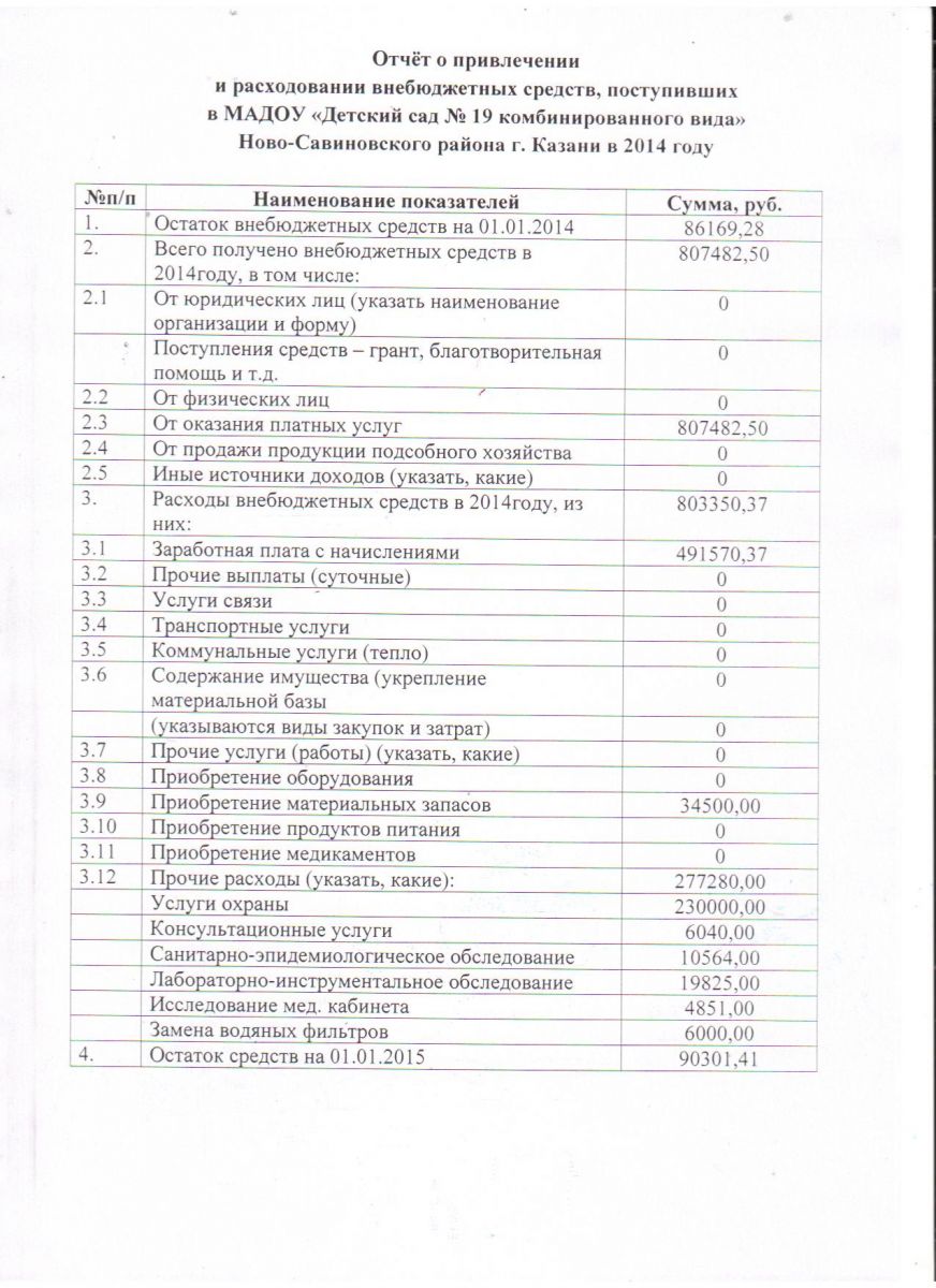 Отчет о привлечении и расходовании внебюджетных средств в 2014 году.