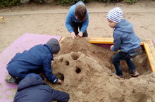 Цель: Продолжать развивать познавательный интерес и коммуникативные способности при самовыражении в конструировании из песка. -