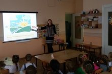 Нас посетила инспектор по пропаганде Юлия Юрьевна. Она провела с детьми беседу, показала мультфильмы на тему безопасного поведения на дорогах. Встреча была познавательна и интересна.