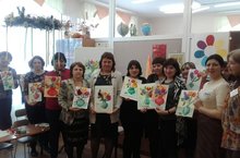 Сегодня прошел мастер-класс, который провела воспитатель Ирина Геннадьевна. Педагоги нашего детского сада научились рисовать натюрморт, используя салфетки, пластилин и ватные диски.