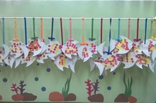 Цель: продолжать знакомство с миром рыб; аккуратно наклеивать чешуйки, располагая на туловище рыбки. Дополнять аппликативное изображение графическими приёмами (дорисовать глаз, полоски на плавниках)