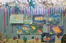 Прошедшая неделя в подготовительной к школе группе № 8 была посвящена теме «Глубины океана». Ребята много узнали об обитателях морей и океанов, познакомились с устройством аквариумов. Вот таких красивых рыбок ребята нарисовали на занятии по изобразительной деятельности.
