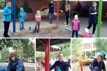 Участок для прогулок старшей группы № 11 преобразился. Он стал ярким, красочным, нарядным благодаря родителям. Они покрасили конструкции и оборудование, посадили цветы, украсили зелёную зону фигурками животных, птиц и сказочных персонажей.