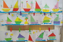 Ребята создавали аппликативные композиции с парусными корабликами, оформляли их графическими средствами и развивали композиционные умения.