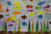 Цель: Продолжать отрабатывать умение работать с бумагой, клеем, дополнять готовый образ. Развивать мелкую моторику, чувство композиции и цвета. Уточнить и закрепить знание детей о внешних признаках рыб. Дать представления о том, что всем нужна вода, а рыбкам особенно, без воды и корма рыбки погибнут.