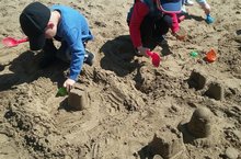 Сегодня дети младшей группы № 9 построили замки из песка, рядом с которыми плыли корабли, маленькие и большие рыбки (сравнили по величине). А также из песочных зайчиков, бегемотиков и т.д. получился зоопарк для животных. Банановые и виноградные куличики помогли «вырастить» нам фруктовый сад. Сегодня прогулка, как и всегда, доставила детям много радости и веселья!!!