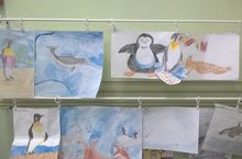 Вот такой необычной выставкой детских рисунков в подготовительной к школе группе №10 закончилась тема недели «Путешествие в Антарктиду". Детям было предложено на выбор изобразить любое понравившееся животное, а кто-то приготовил краткое сообщение и рассказал о нем.