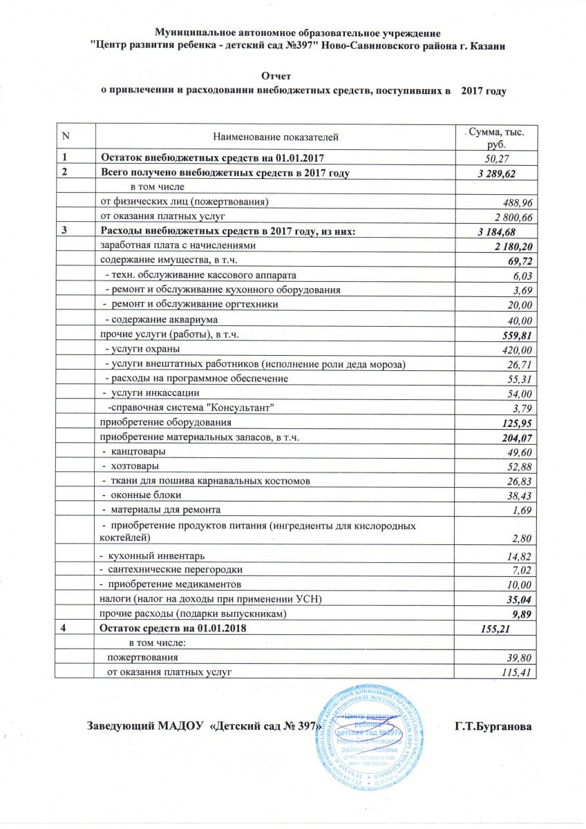 Отчет о привлечении и расходовании внебюджетных средств за 2017 год