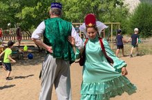К детям в гости пришли Батыр и Сююмбике. В ходе конкурса дошколята показали свою ловкость, силу и выносливость, участвуя в играх-соревнованиях: «Конные скачки», «Кто быстрей донесёт воду», «Перетягивание каната». Особенно весело прошел конкурс «Попади по мячу». Праздник закончился веселыми песнями.